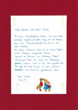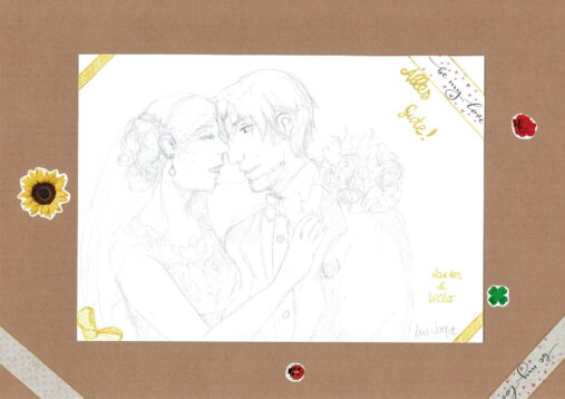 Susannes Zeichner-Freunde haben sich zusammengetan und uns ein Buch aus diversen Zeichnungen und Geschichten zusammengestellt. Die Zeichnungen sind natürlich alles originale und extra für uns angefertigt. Passend zum Thema unserer Hochzeit: Hammster und Schneckerl heiraten.