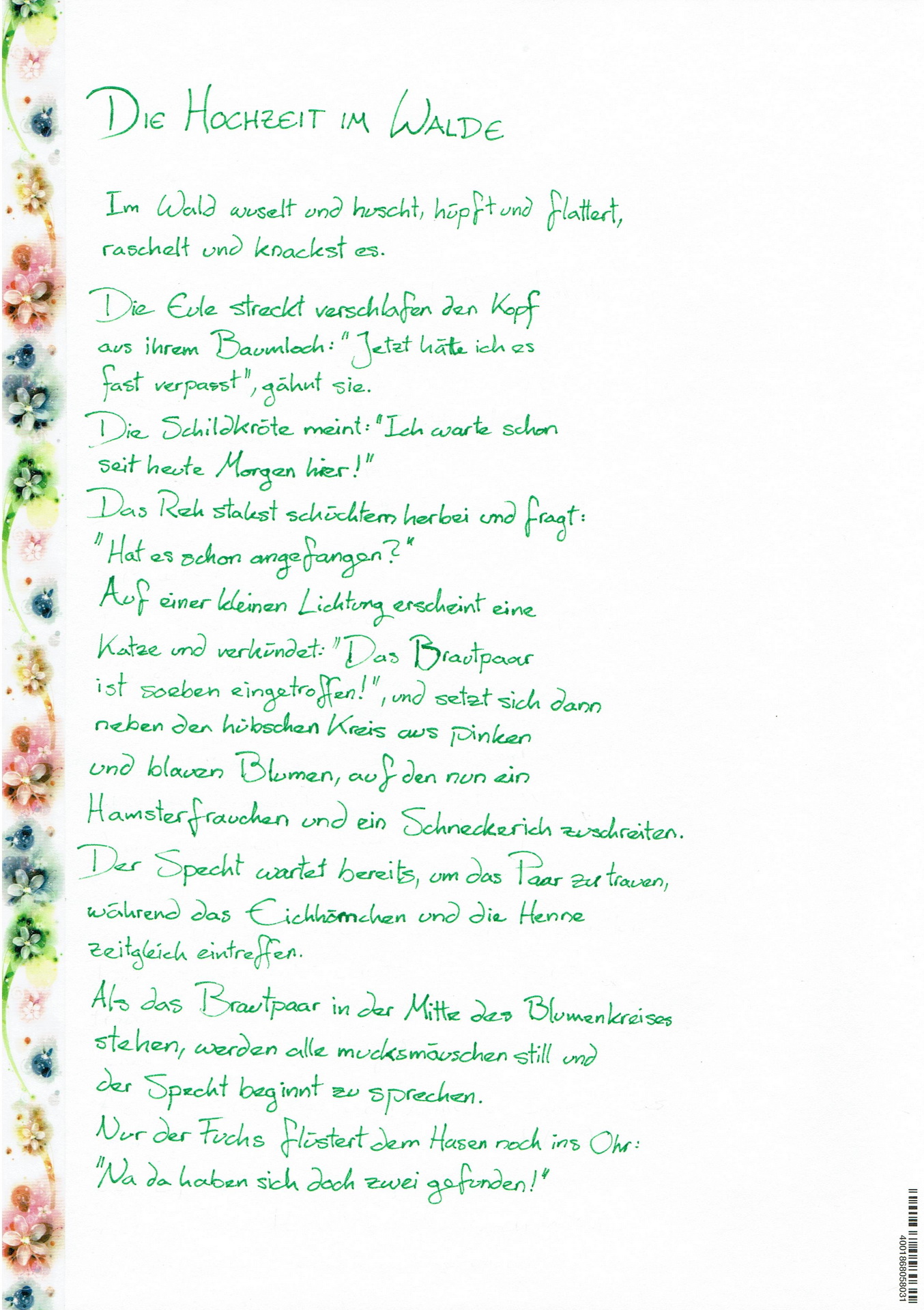Susannes Zeichner-Freunde haben sich zusammengetan und uns ein Buch aus diversen Zeichnungen und Geschichten zusammengestellt. Die Zeichnungen sind natürlich alles originale und extra für uns angefertigt. Passend zum Thema unserer Hochzeit: Hammster und Schneckerl heiraten.