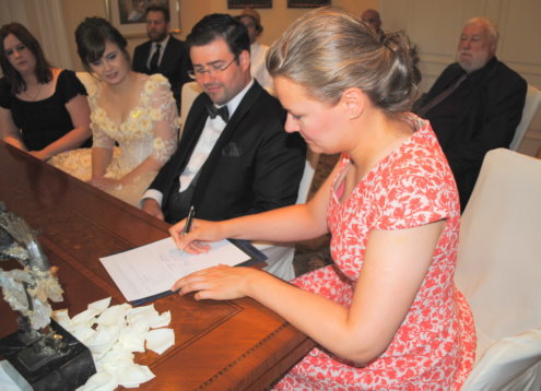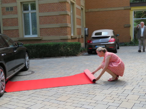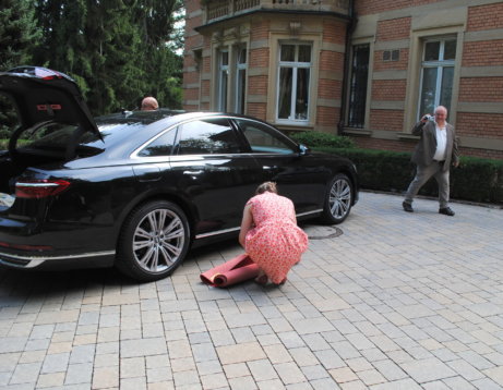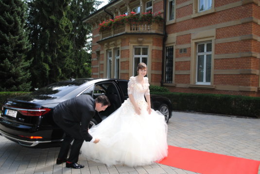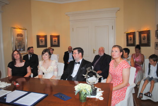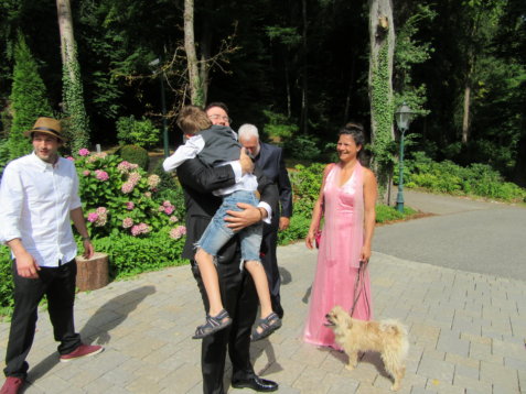 Am 08.08.2018 war es so weit: Wir hatten unseren standesamtlichen Hochzeitstag. Exakt 32 Jahre nach Susannes Eltern. Um 7:00 Uhr klingelte der Wecker im heimischen Birkach, damit unser Fahrer und Freund Peter Susanne rechtzeitig zum Styling bringen konnte. Anschließend fuhr er Franzi und das Brautpaar sicher nach Pfinztal.
