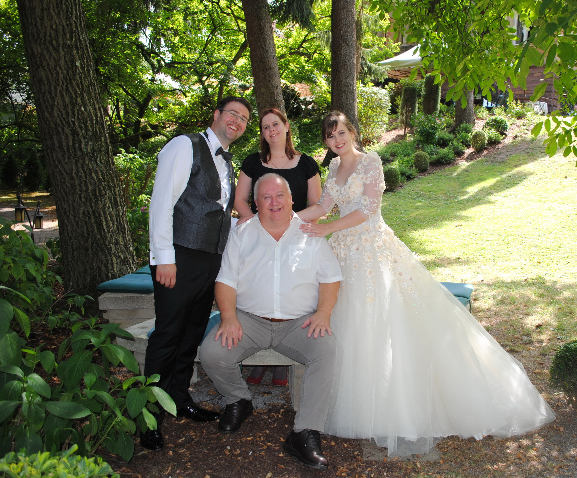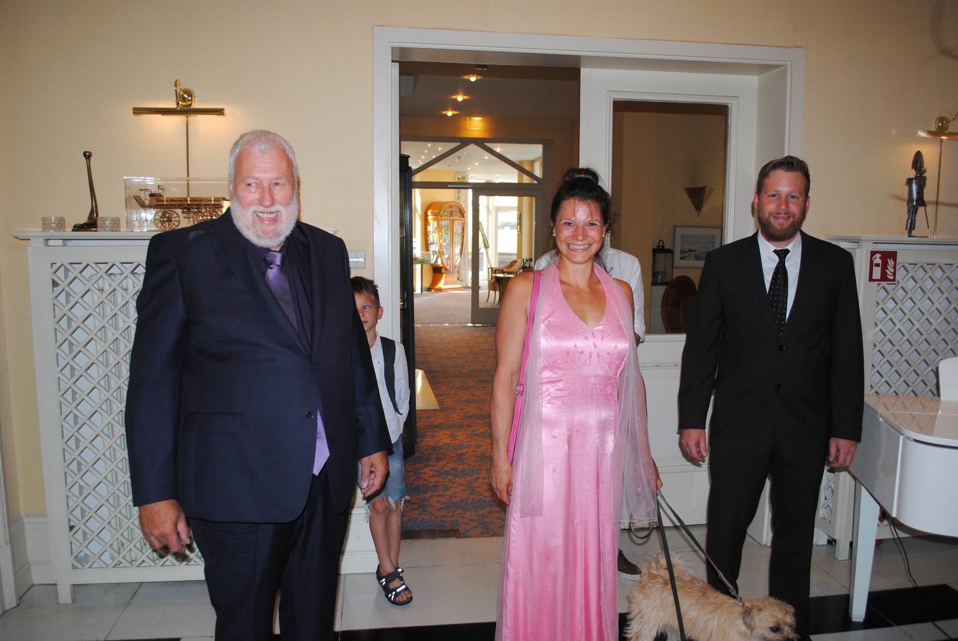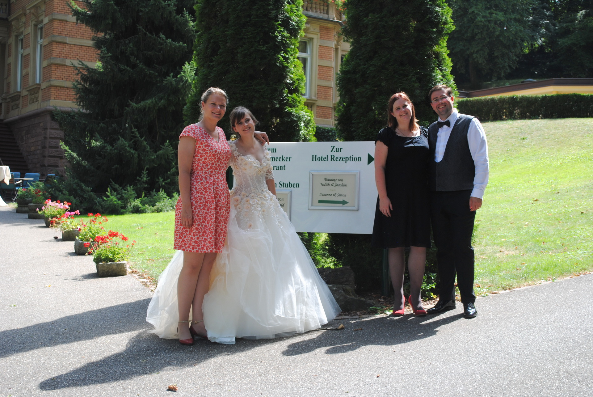 Am 08.08.2018 war es so weit: Wir hatten unseren standesamtlichen Hochzeitstag. Exakt 32 Jahre nach Susannes Eltern. Um 7:00 Uhr klingelte der Wecker im heimischen Birkach, damit unser Fahrer und Freund Peter Susanne rechtzeitig zum Styling bringen konnte. Anschließend fuhr er Franzi und das Brautpaar sicher nach Pfinztal.