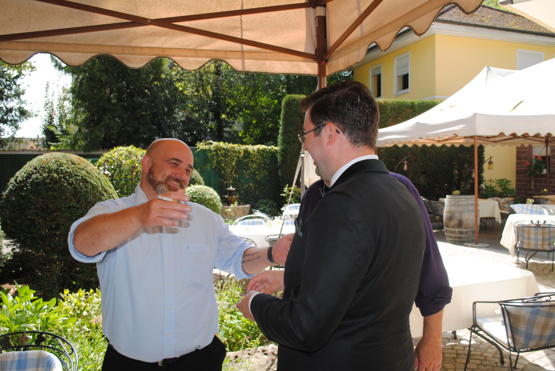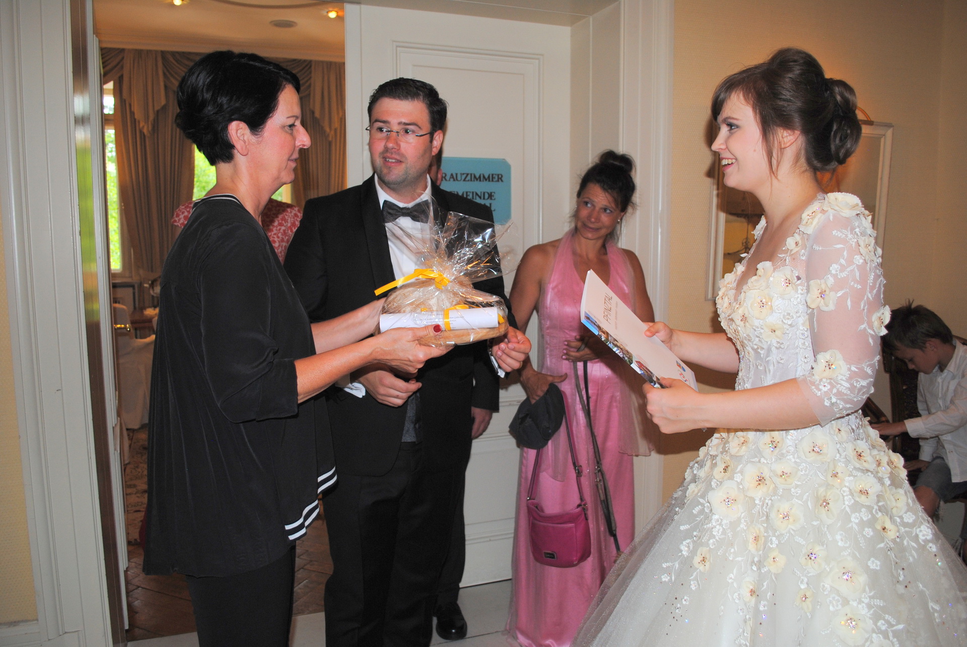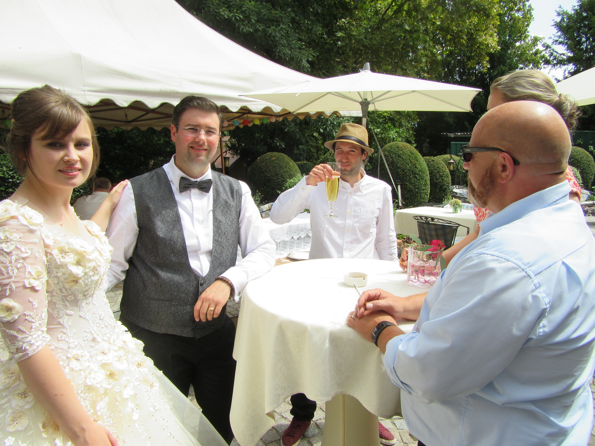 Am 08.08.2018 war es so weit: Wir hatten unseren standesamtlichen Hochzeitstag. Exakt 32 Jahre nach Susannes Eltern. Um 7:00 Uhr klingelte der Wecker im heimischen Birkach, damit unser Fahrer und Freund Peter Susanne rechtzeitig zum Styling bringen konnte. Anschließend fuhr er Franzi und das Brautpaar sicher nach Pfinztal.